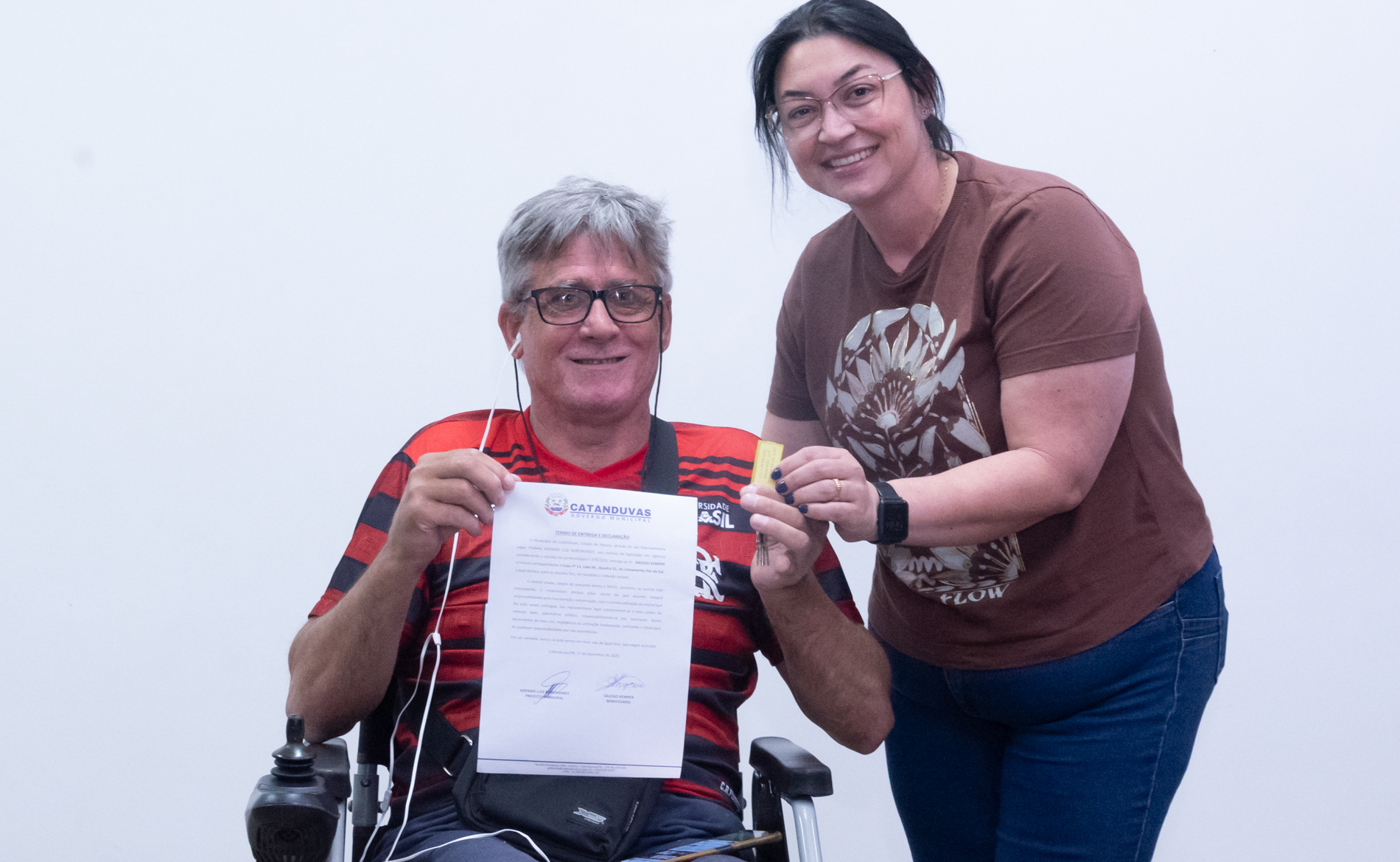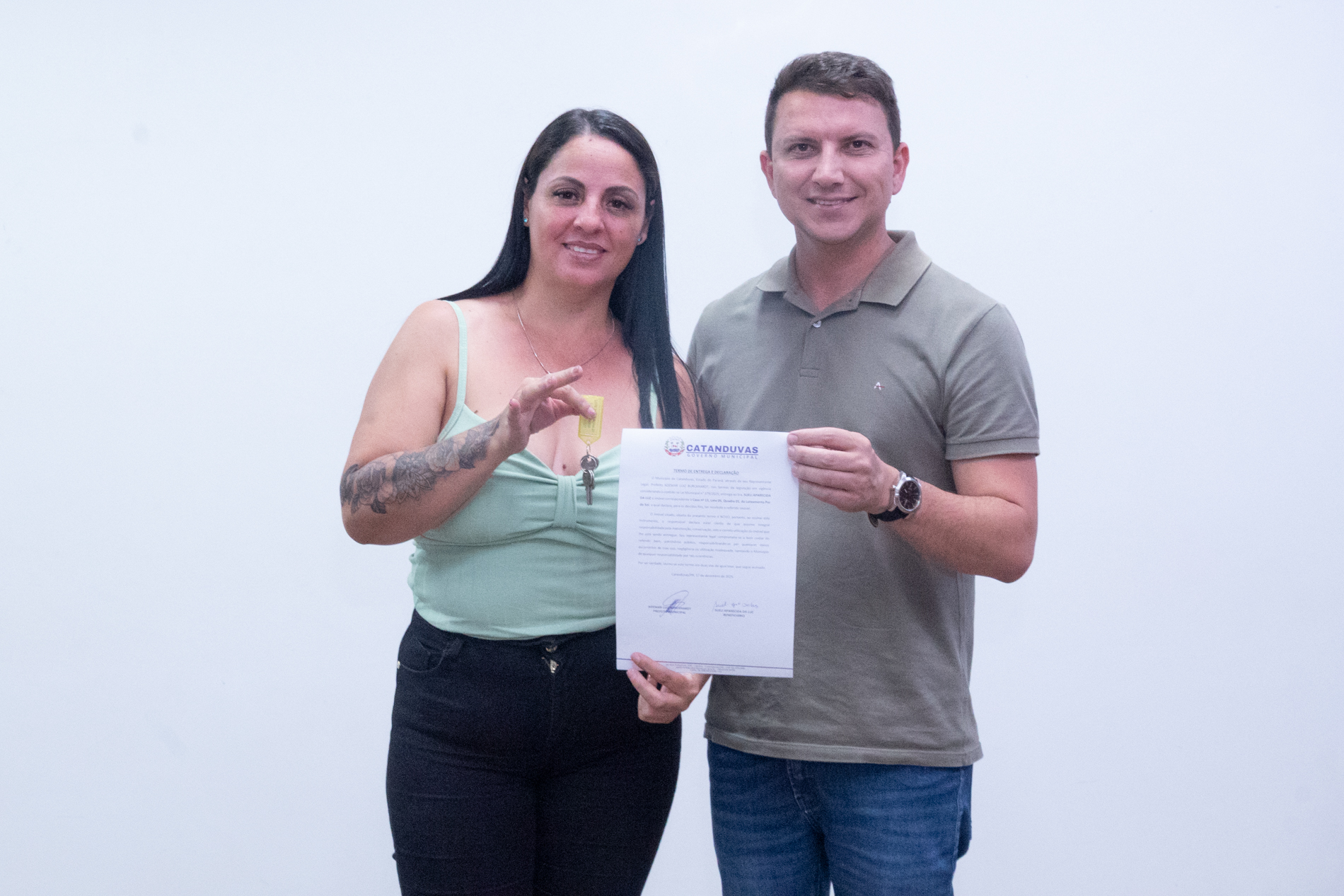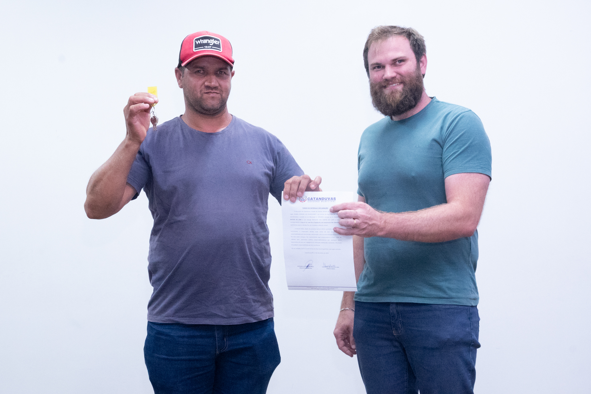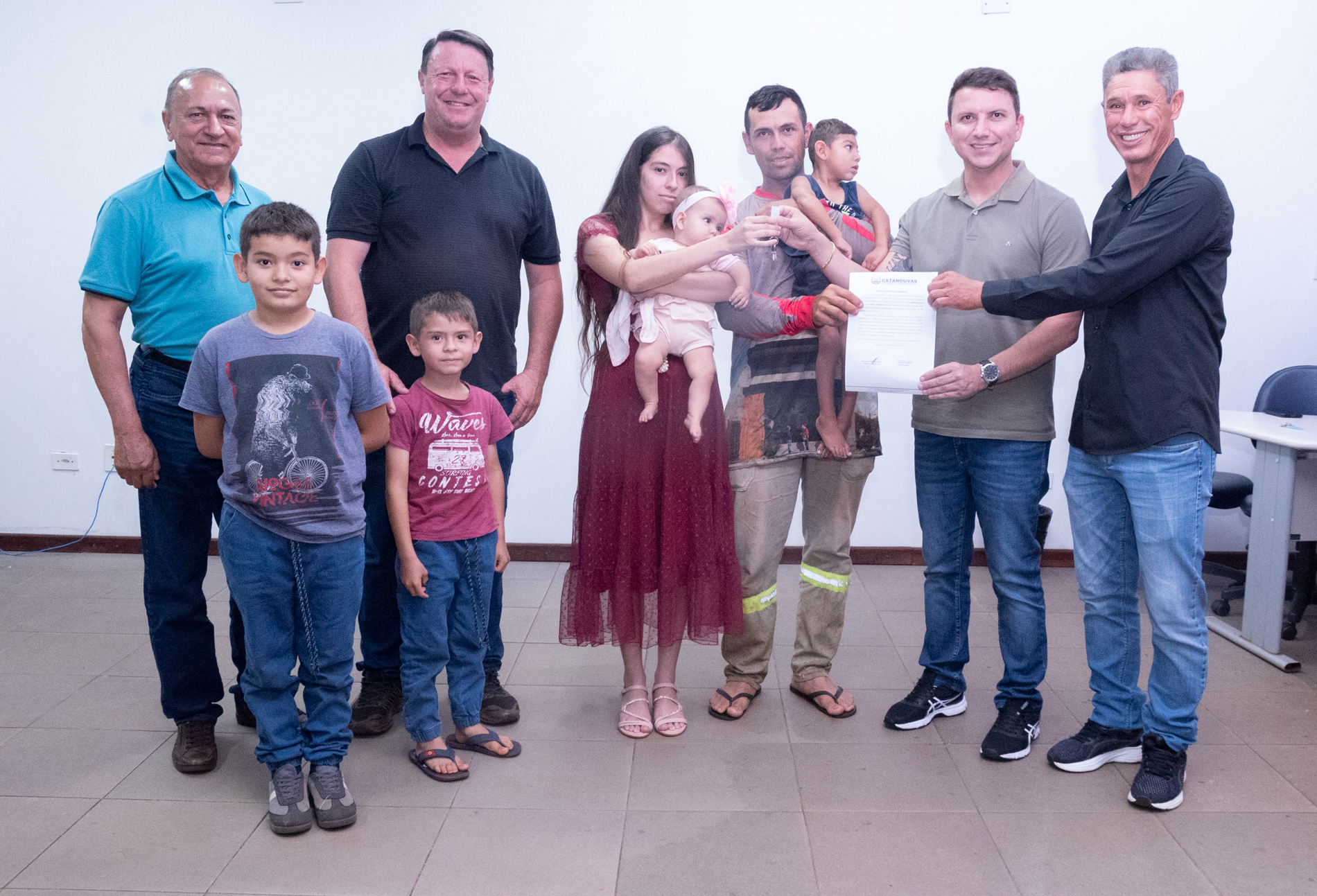 No dia 17 de dezembro, o Município realizou a entrega de 14 unidades habitacionais às famílias contempladas pelo programa habitacional instituído pela Lei nº 379/2025, representando um importante avanço na política de habitação social.