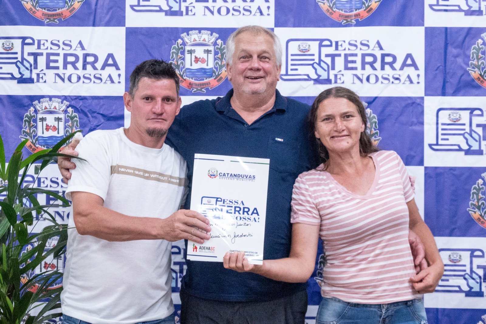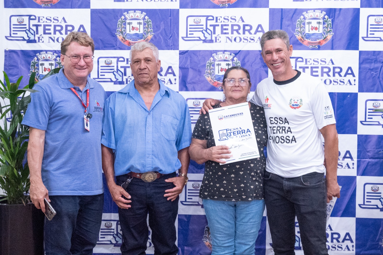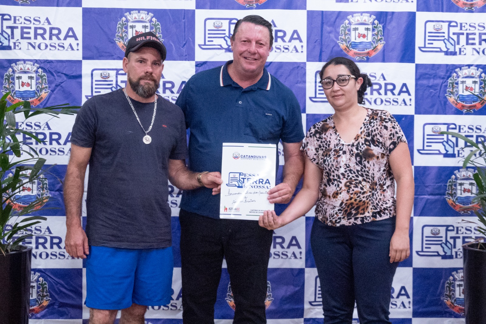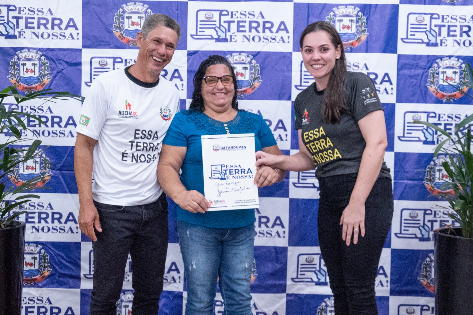 Para a entrega das matrículas, fizeram-se presentes os membros da Comissão da Reurb: Oziel de Oliveira, Silvana da Silva Trombeta, Rosinha dos Reis e Celso Thisen. Representando o Cartório de Registro de Imóveis de Catanduvas, estiveram presentes Sueli Giacomel, Ana Cristina Giacomel e Analice Pereira, além de secretários municipais e demais autoridades.