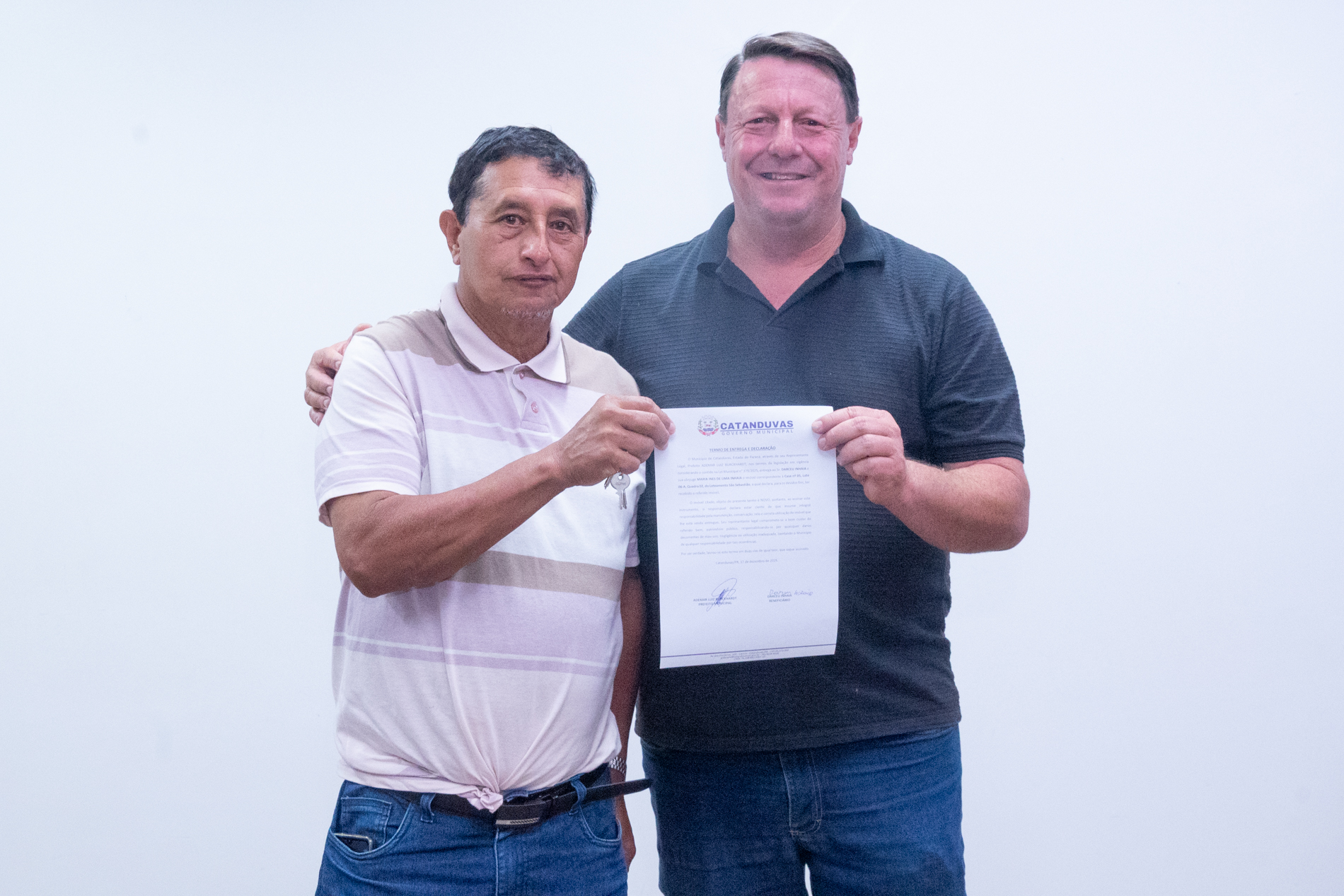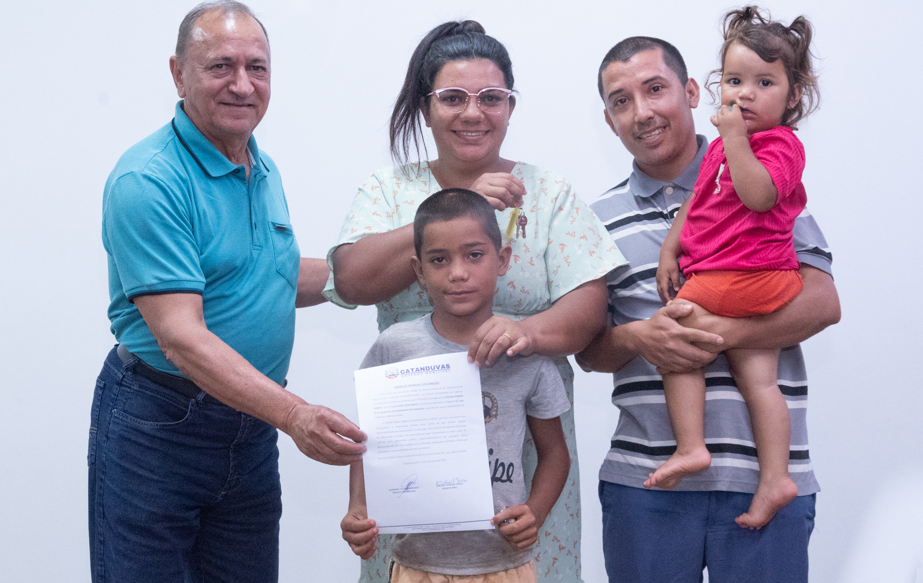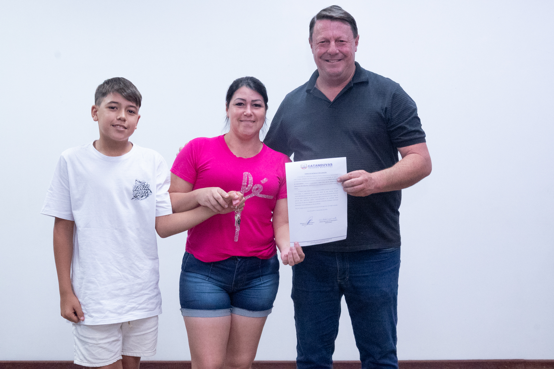 No dia 17 de dezembro, o Município realizou a entrega de 14 unidades habitacionais às famílias contempladas pelo programa habitacional instituído pela Lei nº 379/2025, representando um importante avanço na política de habitação social.