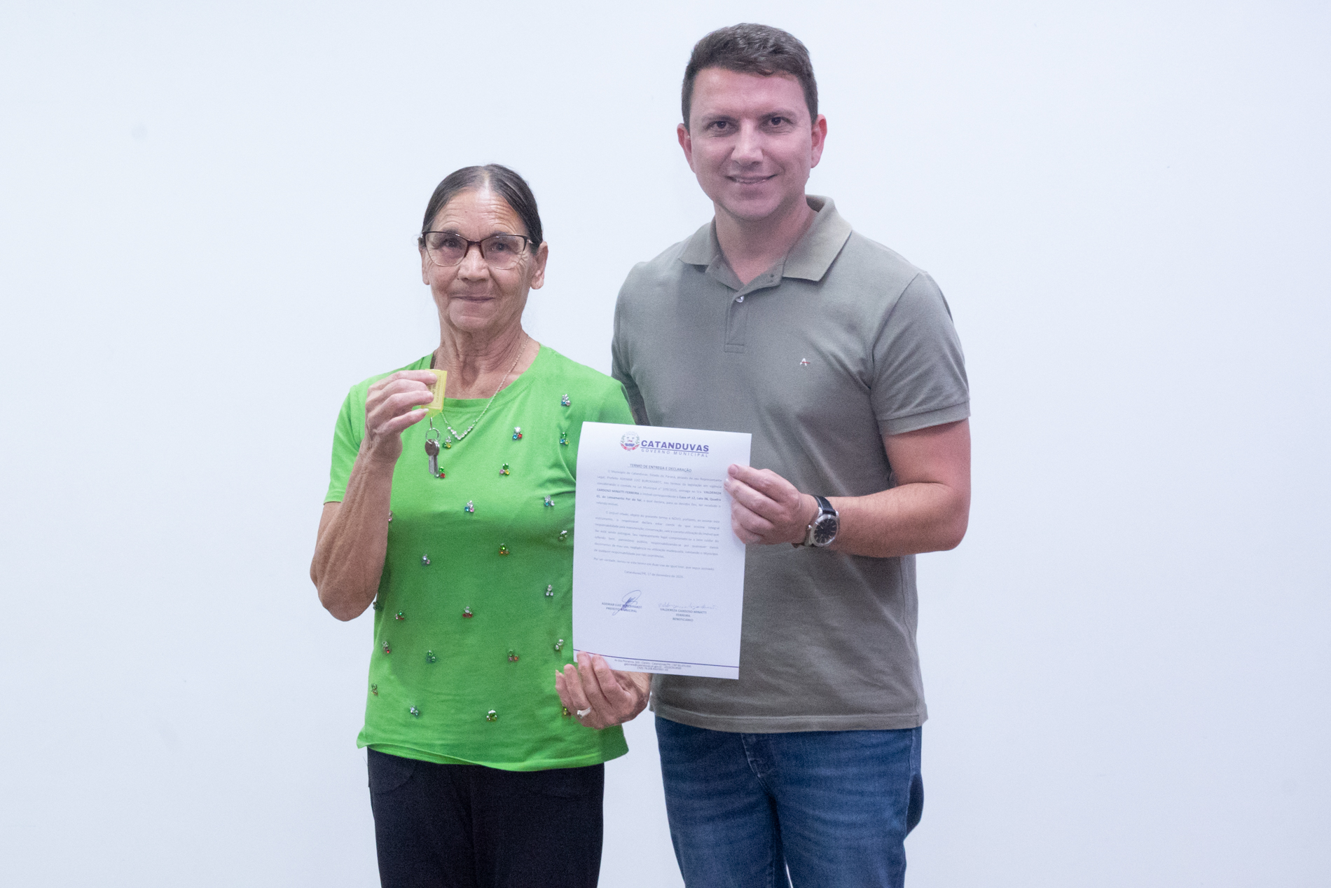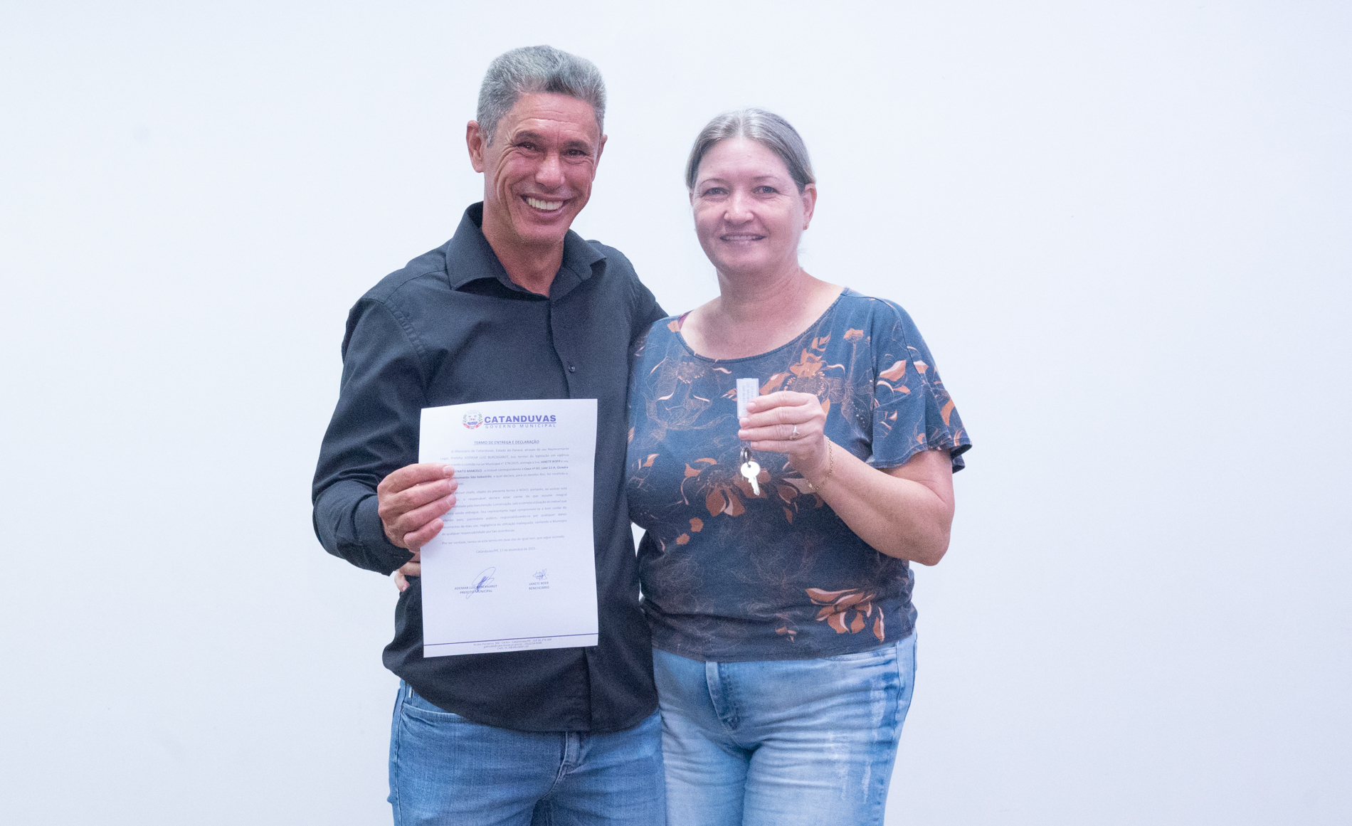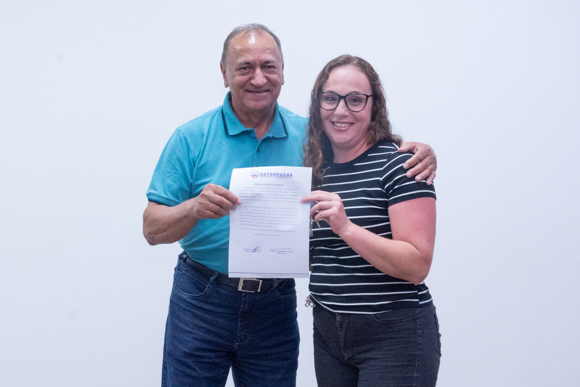 No dia 17 de dezembro, o Município realizou a entrega de 14 unidades habitacionais às famílias contempladas pelo programa habitacional instituído pela Lei nº 379/2025, representando um importante avanço na política de habitação social.