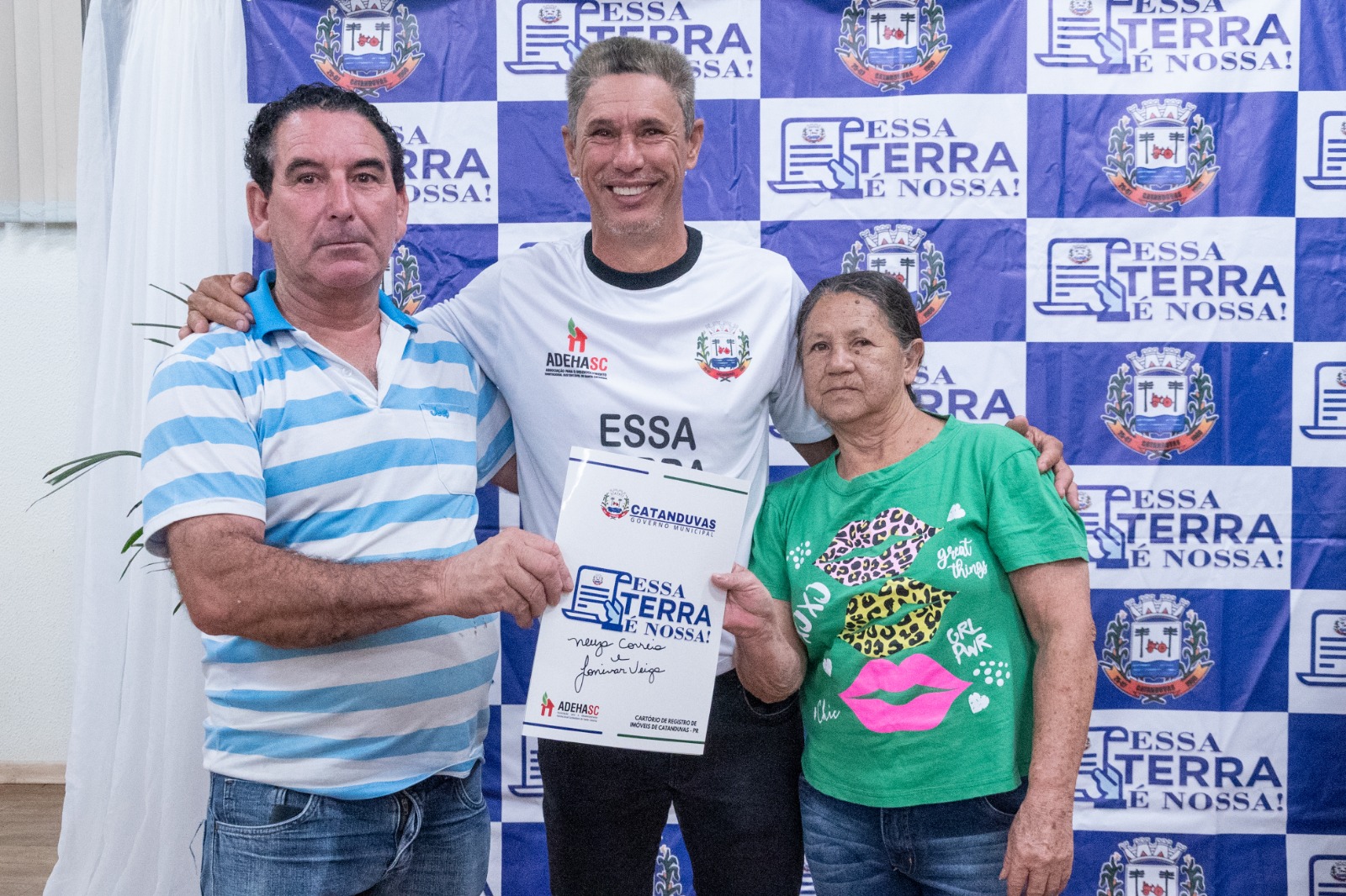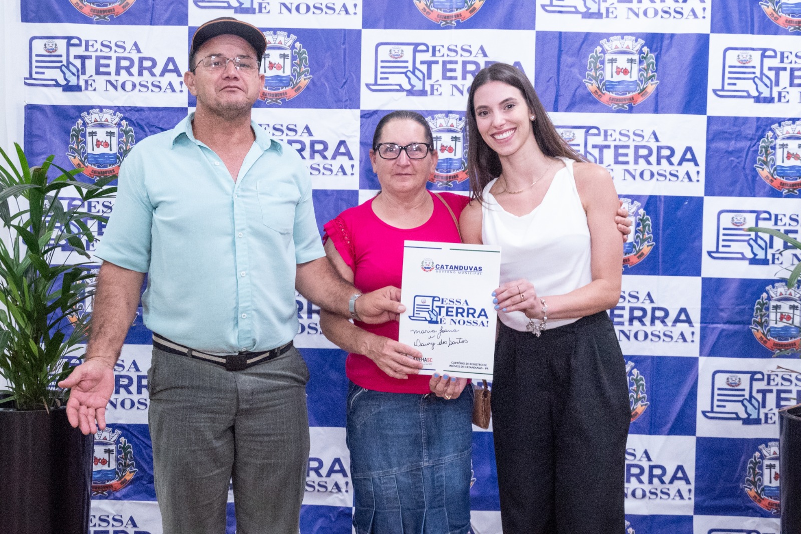 Para a entrega das matrículas, fizeram-se presentes os membros da Comissão da Reurb: Oziel de Oliveira, Silvana da Silva Trombeta, Rosinha dos Reis e Celso Thisen. Representando o Cartório de Registro de Imóveis de Catanduvas, estiveram presentes Sueli Giacomel, Ana Cristina Giacomel e Analice Pereira, além de secretários municipais e demais autoridades.